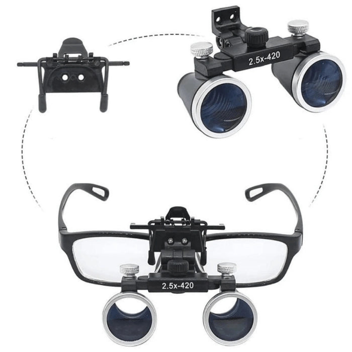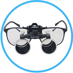 1x frame with 2.5x or 3.5x binocular glass lenses